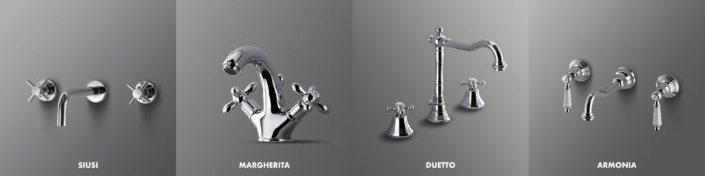 Tra le collezioni più apprezzate troviamo modelli come Armonia, che incanta con le sue linee sinuose disponibili in finiture cromate e bronzate, e Duetto, proposta anche nella raffinata variante ramata per ambienti dal gusto tradizionale. La linea Margherita si distingue per le forme arrotondate che garantiscono maggiore comodità d’uso, mentre Siusi colpisce per il suo carattere deciso e le linee pulite ma mai banali.